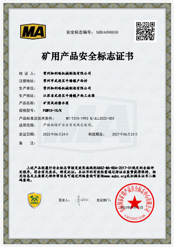 • 礦用安全標(biāo)志證書-BQG550/0.3